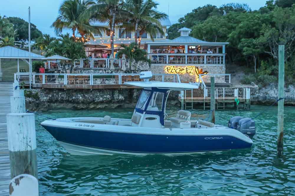We took our new boat, Remedy, a 26 foot center console and put about 500 miles on her in a week. The boat did great with the exception of stopping my heart in the middle of the Gulfstream when we built up a bunch of sargassum grass and the overheat alarm went off. That buzzer took a couple of years off my life 40 miles out in the stream. Getting the grass off (which became a regular event the rest of the way), we headed on across. Normally, the grass is not a problem, but we were having to go pretty slow because of the waves. Stuff catching on the motors became the theme of the trip. In the Sea of Abaco, we managed to hit a 2×4 that instantaneously lodged cross ways in front of both motors. With the cavitation, loss of speed and water spraying up, I imagined we had spun a prop. Imagine my surprise and relief when I tilted them up to reveal a piece of lumber and no damage. On the way back, it was a simple grocery bag, and after the sargassum grass training, I spotted it before the alarm even went off, because the speed indicator dropped almost instantly to zero. Other than those incidents and a break in our fresh water line that led to all of our water being pumped into the bilge and overboard, the boat was flawless. Freshwater and raw water lines have now been rerouted where they don’t chafe… who designs these things? On the way over, we stayed the first night at Spanish Cay. We really like Spanish Cay, but being that far North limits access a bit. We started our search on Manjack and Green Turtle Cay. I really love Coco Bay as well as Manjack. Each had their pro’s and con’s but by the end of the trip, we had pretty much talked ourselves out of both places due of various reasons. While looking we stayed at the Green Turtle Club. It is one of my favorite resorts. They treat their guest very well, the food and drinks are fantastic and of course it is on the same island as Miss Emily’s Blue Bee Bar. Goombay Smash Y’all!