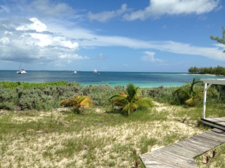 We head back to New Plymouth and the Blue Bee Bar is open. Nothing better than a brunch Goombay Smash. We check out the town and kill a bunch of time talking to random people then check out and head to Crab Cay (the little one on the inside) to anchor out for the night. We get everything set up to spend the night and realize one fatal flaw with our camping on the boat plan… the gnats can fit through the screen in our windows and they are eating us up.
