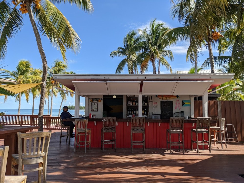 So, ice-cold Kalik and well… like the Zack Brown song goes “toes in the water…” just sub in a Kalik and you have our first afternoon at Lubbers Leap. We were boatless, since the marina was closed on Sunday, so we walked to Cracker P’s for a fish burger and some fish dip… and of course a frozen mojito (or two).