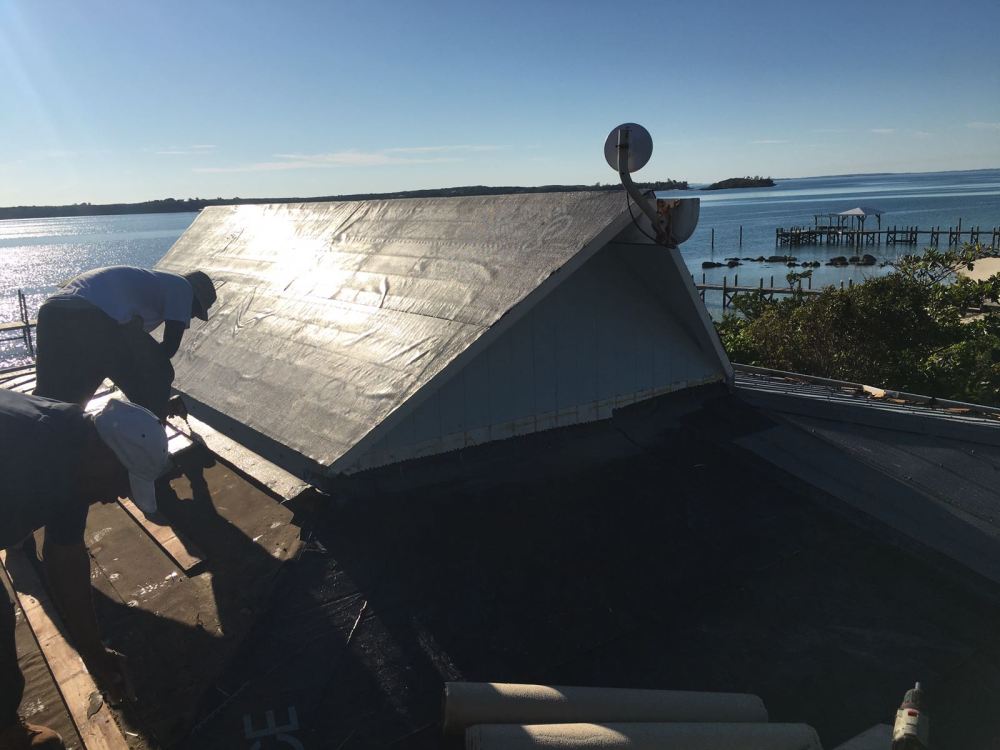 Well, we (in the royal sense) got all that crap off there, cut the eaves of the house back to remove the rotted area and then covered the roof with ice and water shield to get ready for the new aluminum roof. It turns out that no one ever scheduled the metal roofer, or something. As I am discovering in Abaco, there is sometimes no clear cut answer of “why”. Never the less, we would not be getting a metal roof for a couple of months.